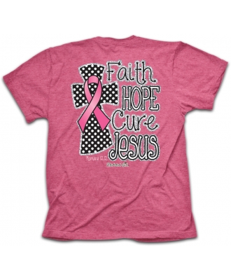 The ultimate cure is realized through the faith and hope that is found only in Jesus. In Romans 12:12 we are encouraged to be joyful in hope, patient in affliction and faithful in prayer. No matter where you go there is someone who needs to be encouraged with the promises found in God’s word. And as you wear the Faith Hope Cure Christian t-shirt you will be a carrier of that hope.