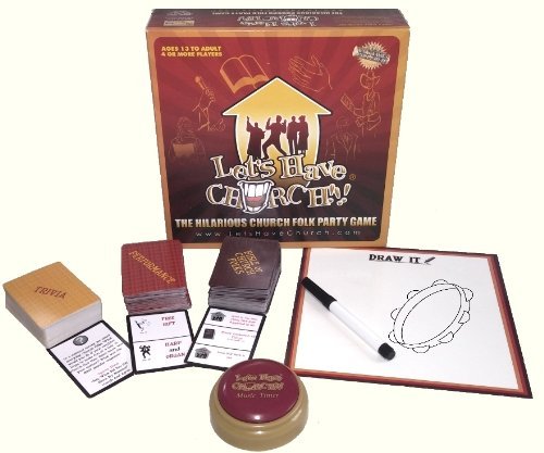 Let’s Have Church!!! is a hilarious party game by Church Folks for Church Folks and anyone else that enjoys having a good time! Players enjoy 3 rounds of action packed play while laughing all the way. LOL at outrageous Sunday morning jokes strait from pulpits across America – then get up and act them out! Ages 13 to Adult. 4 or more players. Game contents: (1) 77-second Church Music Timer; (3) card decks with 600 quotes, sayings and challenges; (1) dry erase board and marker; (1) rules of play booklet with special bonus questions! WARNING! Playing Let’s Have Church!!! with friends and family all week doesn’t get you out of Church on Sunday! Makes a great gift!