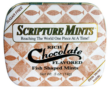 Each tin is filled with 50 deliciously flavored intense breath mints. The mints are cut out and shaped like little Christian fish. Each pocket tin has a Scripture verse printed on the inside of the lid and a brief explanation of the Christian fish
