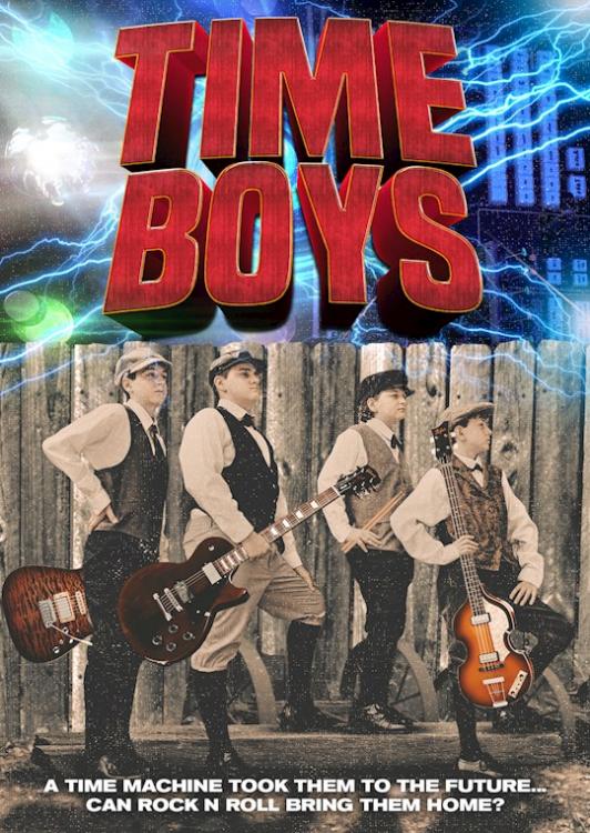 Four teenage boys from 1908 are accidentally hurled more than a century into the future. They live in shock, grief, acceptance, and then resolution, striving to build a time machine to return to 1908. While in the future, they confront and defeat the school bullies. The movie has a world-class soundtrack, complete with a battle of the bands, in which our four heroes showcase their musical talents!